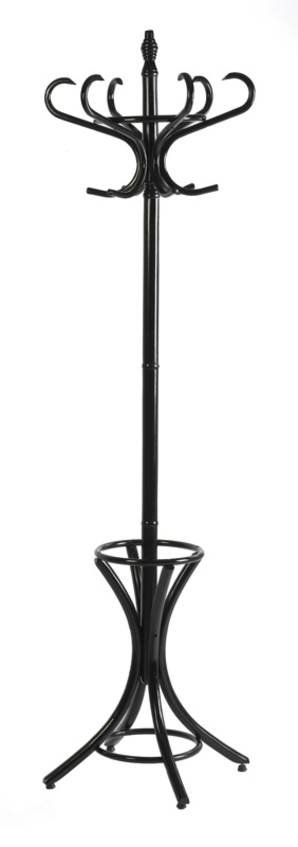 Houten kapstok met parapluhouder en draaibare kroon met 12 haken. De kapstok wordt ongemonteerd geleverd.