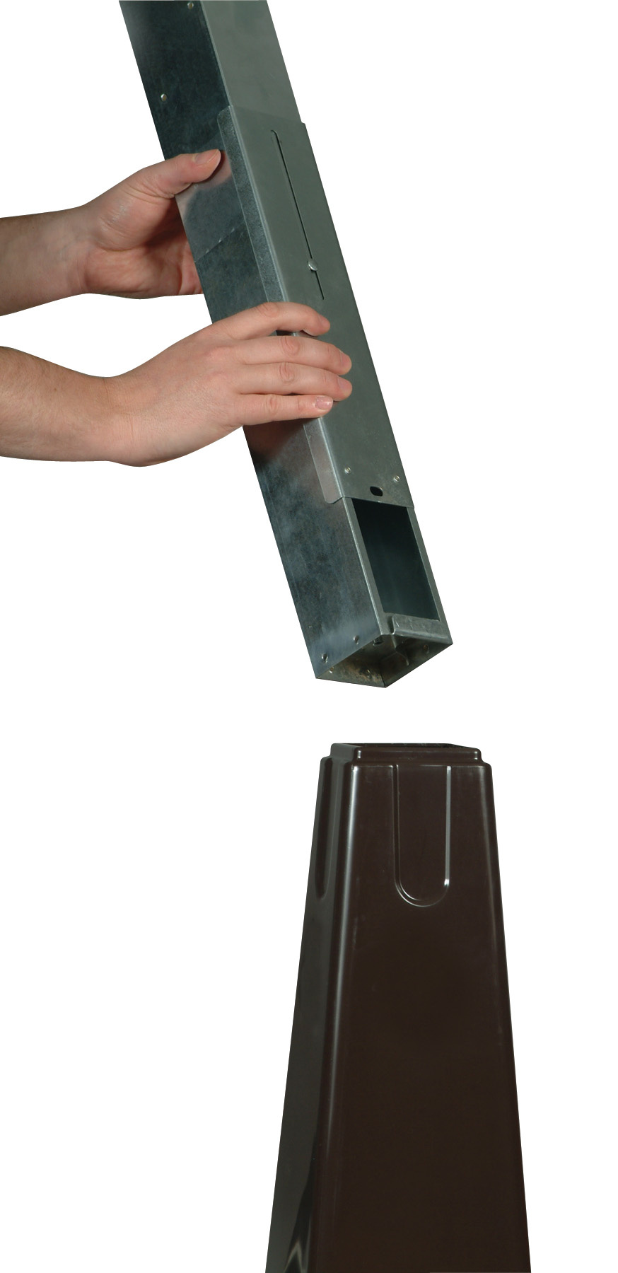 Staande asbak van polyethyleen met een stalen binnenbak. De kleine opening zorgt ervoor dat de peuken snel doven. Eenvoudig te onderhouden en te legen. Optioneel: ballastring voor stabiliteit.