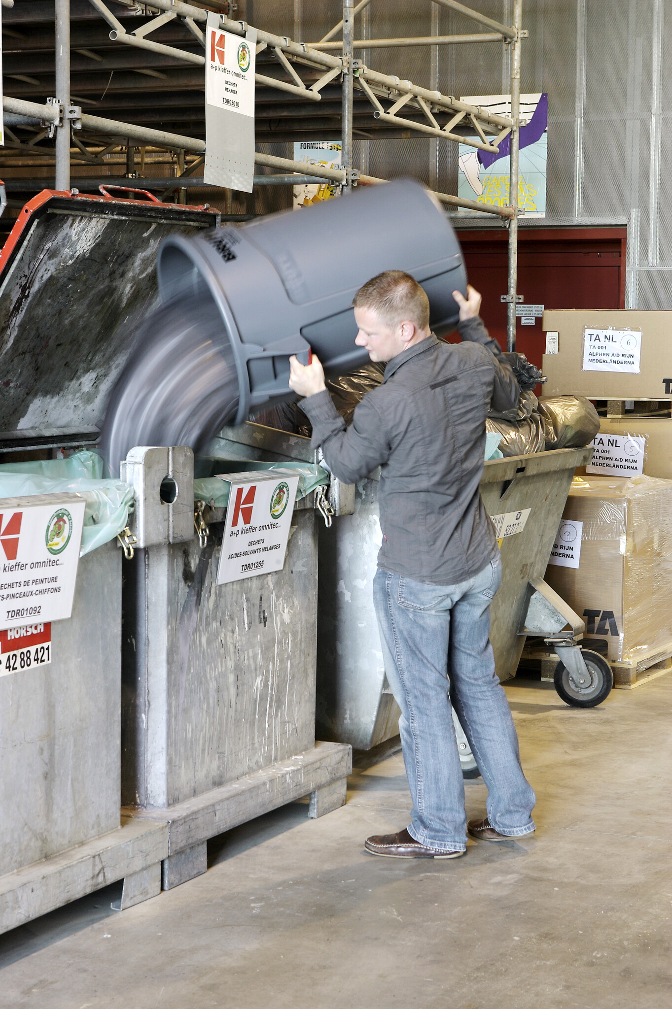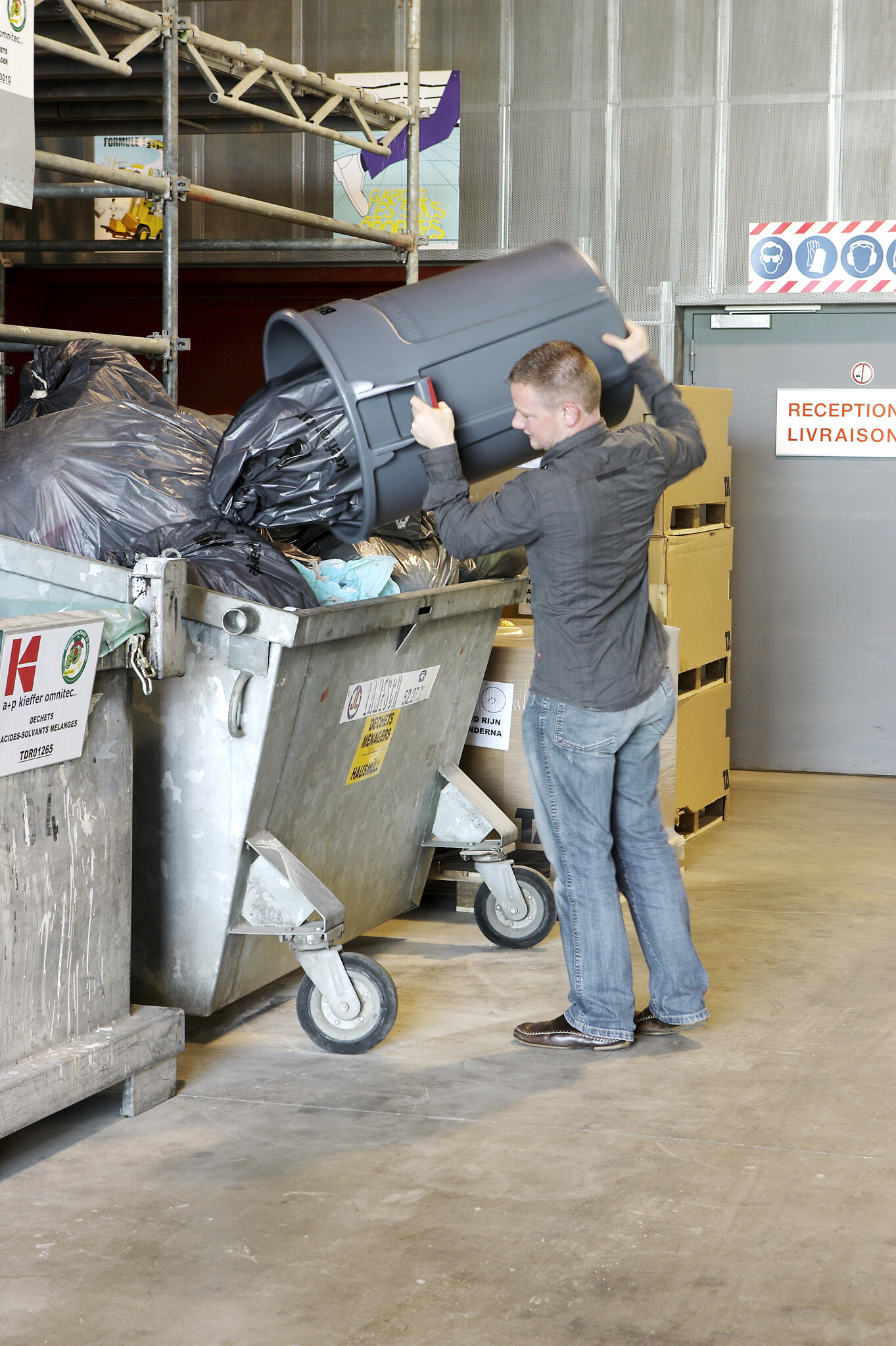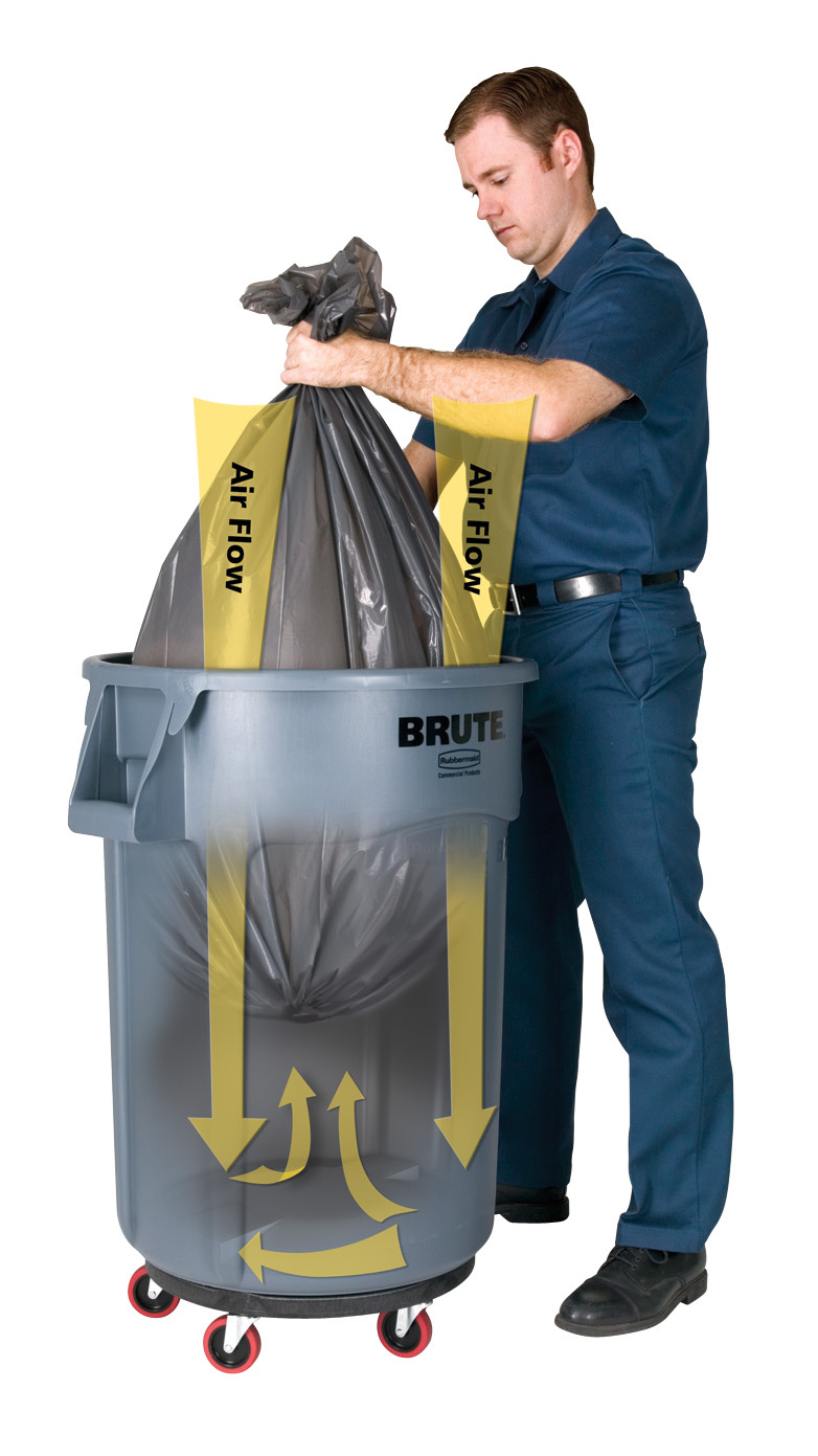 Polyethyleen container met luchtsleuven, om het vacuüm zuigen van de zak te voorkomen. Handgrepen aan de onder- en bovenzijde van de container voor verbeterde grip. Zeer sterk, geschikt voor intensief gebruik.