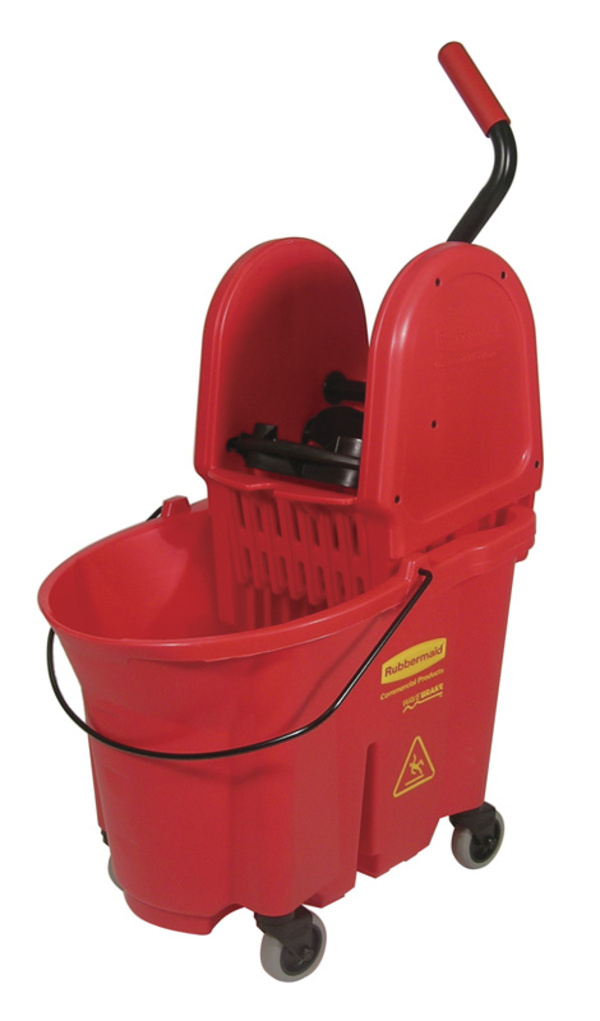 Pers met 33 ltr emmer vervaardigt uit structuurkunststof, speciaal ontworpen tegen het klotsen van vloeistof. Neerwaartse perswringer kan worden gebruikt met strengenmoppen. Voorzien van 4 geruisloze zwenkwielen.