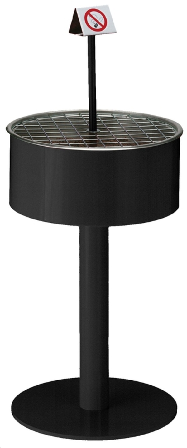 Ronde metalen zandasbak met aluminium inzetbak en verchroomde zeef.