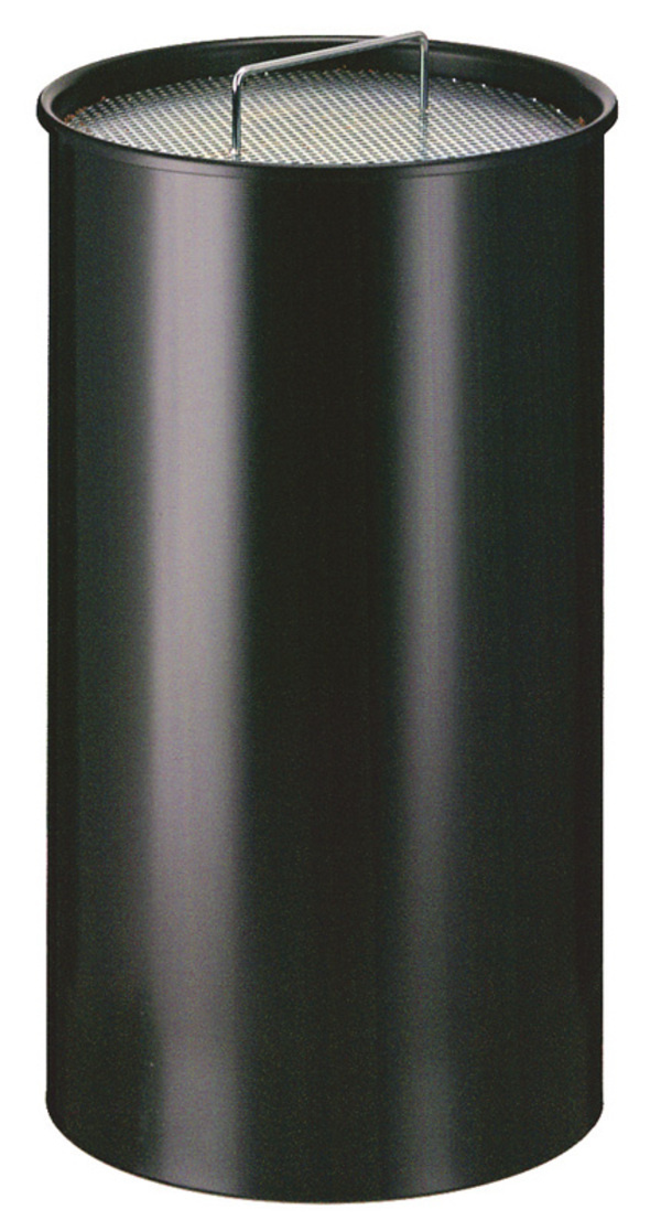 Grote, ronde gepoedercoat stalen zandasbak met stalen inzetbak en zeef.