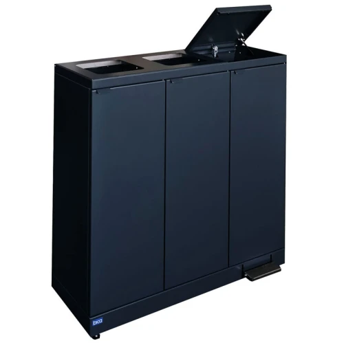 Elegante en functionele afvalbak voor 3 afvalstromen van hoogwaardig gepoedercoat staal. De unit heeft twee grote inwerpopeningen en een unit met hygiënisch gedempt sluitend deksel dat d.m.v. een robuust pedaal geopend kan worden. De stevige deuren met softclose magneetsluiting en geïntegreerde afvalzakhouders zorgen ervoor dat de afvalbak ARBO-verantwoord geleegd en de afvalzak snel verwisseld kan worden. De verstelbare pootjes maken de unit ideaal voor iedere ondergrond. Uitstekend te combineren en uit te breiden met andere afvalbakken uit de Bica-serie.