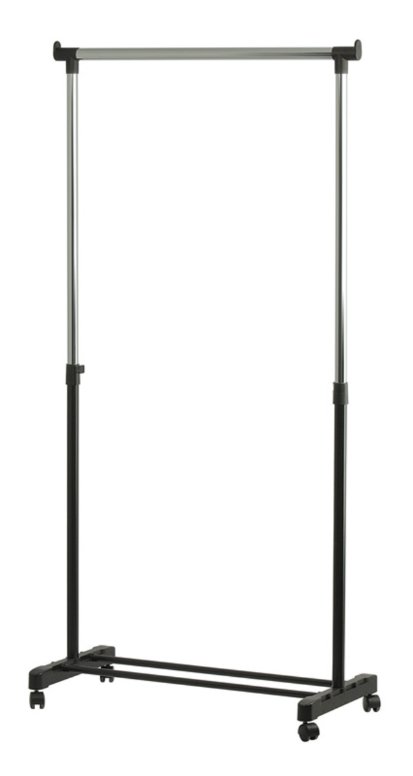 Mobiel kledingrek van metaal en kunststof met zwenkwielen. De hoogte is verstelbaar van 98 tot 170 cm. Maximale belasting: 25 kg.