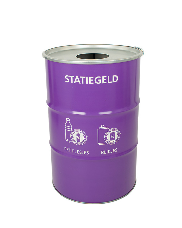 Stoere afvalbak van staal in de vorm van een olievat. Voorzien van een deksel met inwerpopening (Ø 20 cm) en dekselklem, die het deksel en de afvalzak op zijn plaats houden. Een opvallende verschijning op iedere locatie. De olievaten zijn geschikt voor alle soorten afval, waardoor ze ook ingezet kunnen worden voor afvalscheiding.