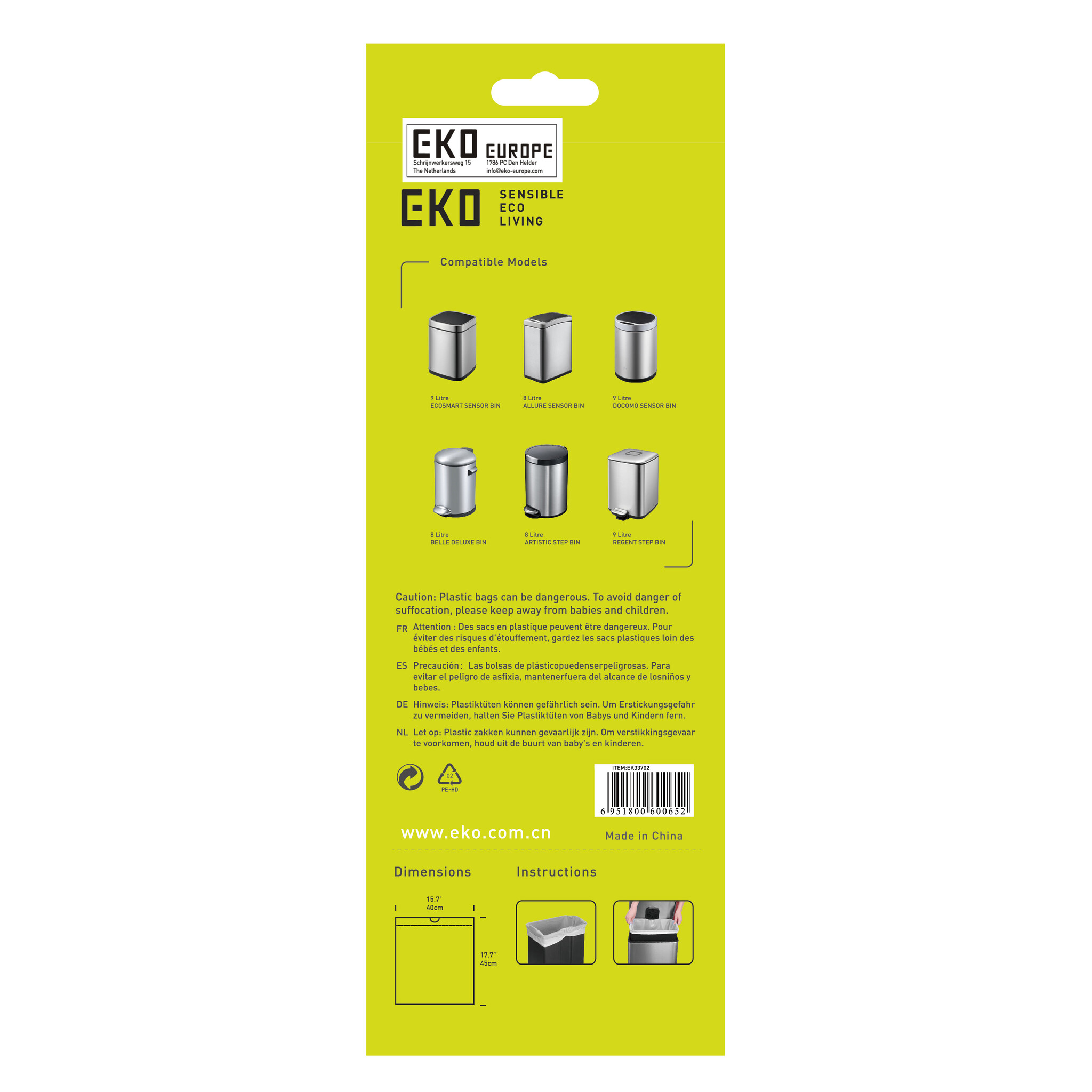 Extra sterke, perfect passende afvalzakken voor EKO afvalbakken of prullenbakken met vergelijkbare afmetingen. Voorzien van handige trekband voor het makkelijk sluiten en dragen van de vuilniszak