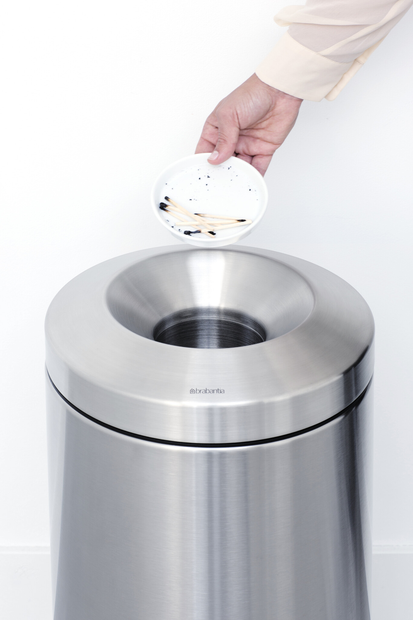 De Brabantia prullenbak met vlamdover van 30 liter is een veilige en ruimtebesparende oplossing voor thuis of op het werk. Dankzij de metalen buitenkant, de metalen binnenemmer en de roestvrijstalen vlamdover worden beginnende brandjes direct gedoofd. Deze robuuste prullenbak is duurzaam, makkelijk schoon te maken en past in elke ruimte waar veiligheid vooropstaat.