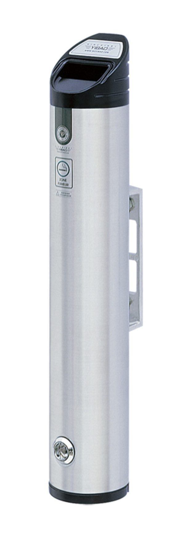 Design asbak voor wandbevestiging gemaakt van hoogwaardig, corrosiebestendig aluminium. De uitdoofplaat is gemarkeerd met een sigarettenpictogram. De asbak kan eenvoudig geleegd worden via de onderzijde door opening van het driekantslot. Aan de achterzijde zit een sterke beugel voor bevestiging aan de muur. Wordt geleverd inclusief montagemateriaal, driehoeksleutel en schoonmaakborsteltje.