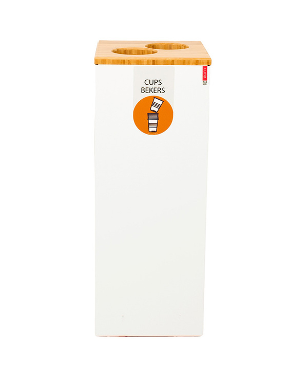 Afvalinzamelingsunit van gegalvaniseerd staal met stijlvol en duurzaam bamboe deksel met 2 bekeropeningen (Ø 9,5 cm) en label. De unit is voorzien van 2 buizen waardoor de bekers gestapeld ingezameld worden en er tot 2x meer bekers in de afvalbak gaan. Makkelijk te legen. Modulair en koppelbaar. Doordat de elementen gekoppeld worden middels magneten kunnen de afvalbakken in de lengte maar ook als cluster gekoppeld worden. Dit maakt de Paxa zeer flexibel en een ideale afvalscheidingsoplossing op elke locatie.